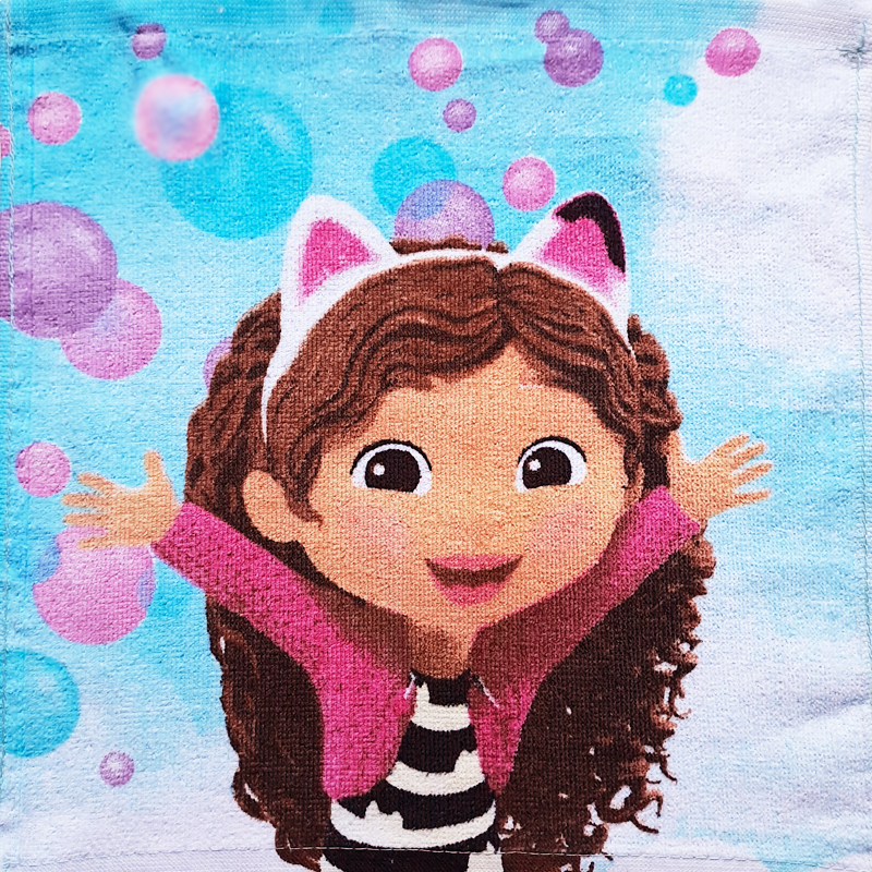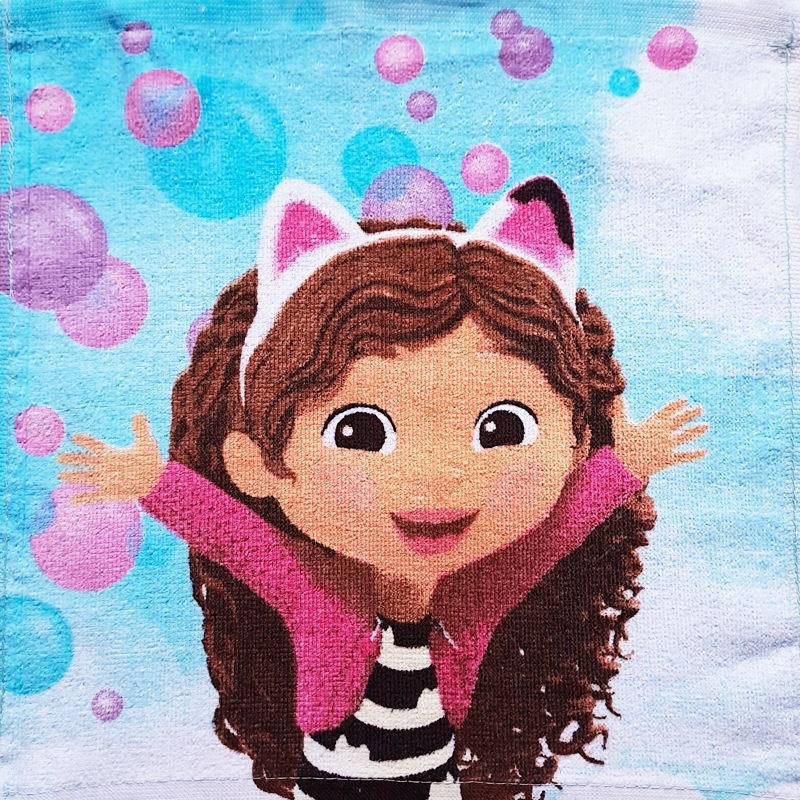 Une jolie serviette de table 30 X 30 cm en coton éponge absorbante. Votre enfant l'emportera à la cantine de l'école, à la crèche ou la Nounou.